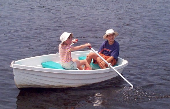 We also have visits from several friends. Folks from the Triangle Sailing Association and Blackbeard's stop by often to see how we are doing. Chris comes for a weekend, and graciously helps Kristina and Luke clean their newly acquired bikes. He also gets to help sand our dorade boxes in preparation for varnish. We do give him a break and attend a NC Symphony concert on the South Lawn of Tryon Palace. Tracey, Greg and their children visit for an afternoon. Their children and our children pick up their friendships right away. Kristina introduces Joel to rowing the dinghy, and Luke takes Luke B. off exploring with bike and scooter. On the fourth of July (a record-breakingly hot day!) other friends, Jim, Greg and Matt come to see our boat, and stay for fireworks at Union Point. Everyone wonders when our newest family member will make his or her appearance. . .