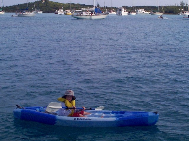 After Allan's we work our way quickly down the Exumas. We left Khaliq, with whom we'd been travelling, as they wanted to dive at many of the spots. Alas, we did not dive any of the Exumas' fabled places, and our morale is a bit low. It's simply too difficult for one-armed Angie to manage alone with Paul, so we press on to Georgetown. We land in Georgetown and meet back up with Carioca. It's great to be with friends, and to just get off the boat and visit the beach.